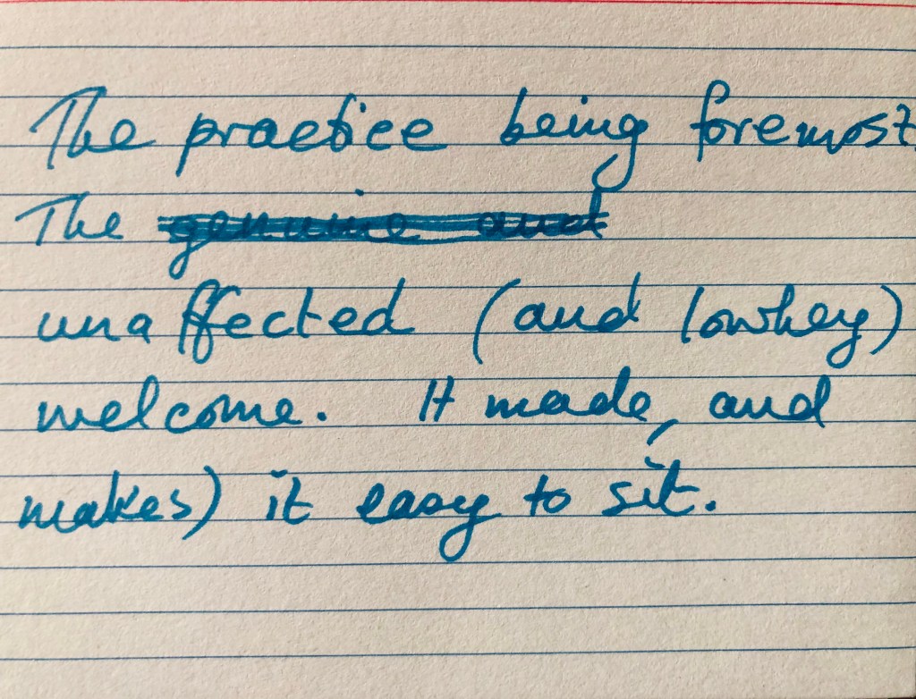 We’ve seen a gradual relaxing of some of Aitken’s Japanese style of formality, with improvisations like replacing formal green tea in the early afternoon with informal afternoon tea out on the veranda, or mid-afternoon open sitting under the sky… And I want to honour our playful, rather black, upside-down sense of humour (that can rather shock our American colleagues!) and the way in which a shared loving laughter can spill over into formal ceremony, without harming any of its power.